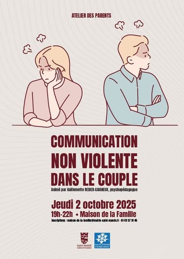 Cet atelier propose d’explorer et de pratiquer les principes de la Communication Non Violente (CNV) pour favoriser des échanges plus harmonieux et constructifs au sein du couple.