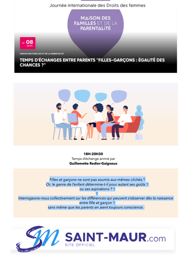 temps d'échange entre parents : filles et garçons : l'égalité des chances