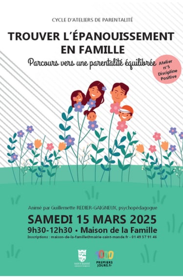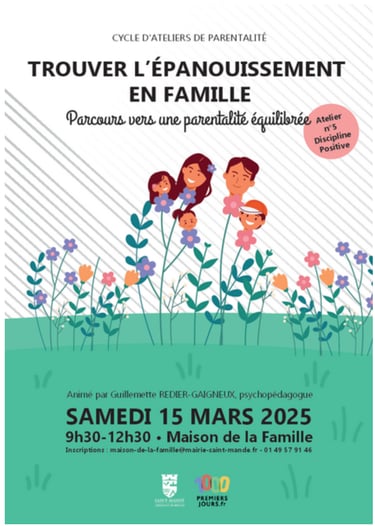 Ce parcours de 5 ateliers parentaux gratuits, organisé par la Maison de la famille de Saint-Mandé (94) dans le cadre du dispositif des 1000 premiers jours, est une opportunité unique pour découvrir des outils concrets et pratiques qui soutiennent les parents dans les défis du quotidien.